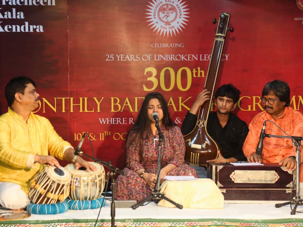 Kendra celebrated 25 years of its uninterrupted Monthly Baithak series with the 300th episode in the month of October 2024 in a two-day glittering event . This milestone featured remarkable performances by both young and eminent artists, highlighting the enduring legacy of artistic excellence.